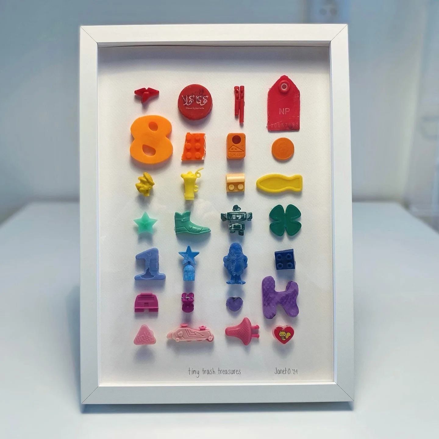 Omdat ik mij bezorgd maak om de natuur en de vervuilde oceaan verzamel ik al jaren kleine stukjes oud papier en plastic afval van over de hele wereld. Het verzamelen van deze kleine stukjes, Tiny Pieces, is net schat zoeken.