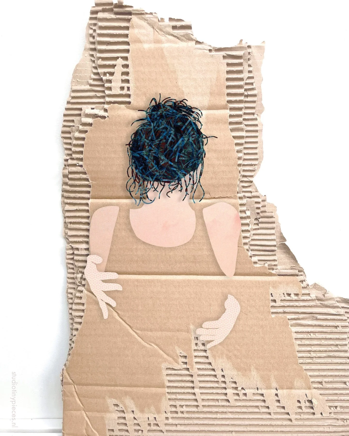Onder de naam Studio Tiny Pieces maak ik collage-illustraties die zijn opgebouwd uit kleine stukjes gerecycled papier of plastic uit de oceaan. Hierdoor ontstaat een boeiende visuele textuur en dit voegt extra diepte toe aan een verhaal.
